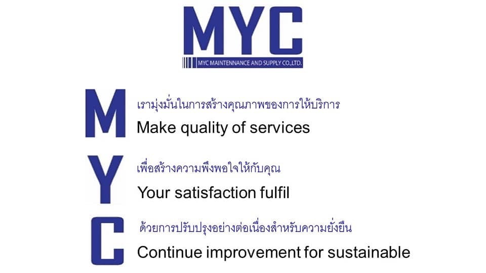 บริษัท เอ็มวายซี เมนเทนแน้นซ์ แอนด์ ซัพพลาย หรือชื่อย่อ MYC ก่อตั้งขึ้นเมื่อ 30 มีนาคม พ.ศ. 2552 โดยบุคลากรที่มีคุณภาพและประสบการณ์ในการให้บริการงานต่างๆ เช่น Piping and Steel Structure Fabrication and Erection, Fabrication Storage Tank and Repair, Fabrication Storage Tank and Repair, Repair and Modify of Boiler, Cracking Furnace, Manpower Supply และ Civil Work ด้วยประสบการณ์มากกว่า 10 ปี บริษัทฯ มุ่งมั่นและพัฒนาการดำเนินงานอย่างต่อเนื่อง เพื่อส่งมอบงานที่มีคุณภาพ ตรงต่อเวลา และทำงานด้วยความปลอดภัย สร้างความเชื่อมั่นแก่คู่ค้า รวมถึงเสริมสร้างความสามารถในการแข่งขันและการพัฒนาบุคลากรอย่างต่อเนื่อง เพื่อการเติบโตอย่างยั่งยืน บริษัทฯ ได้รับการรับรองมาตรฐาน ISO 9001:2015 และอุตสาหกรรมสีเขียวระดับที่ 2